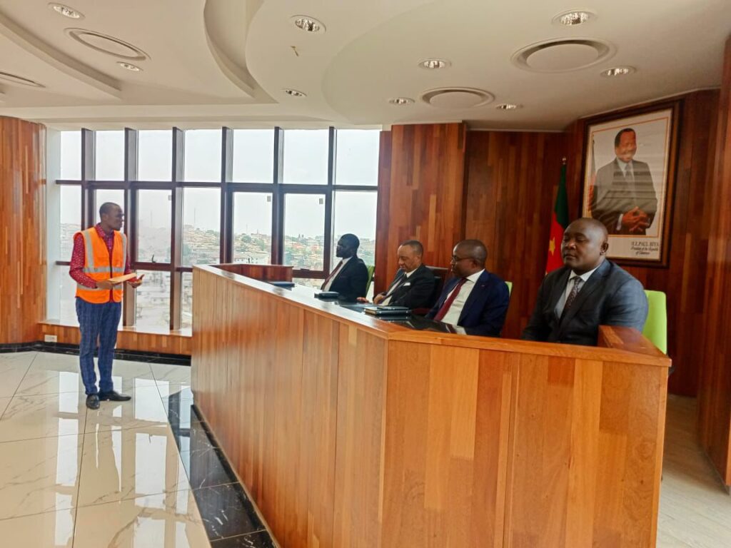 Sous la conduite du Directeur de la Construction, les visiteurs ont eu droit à une visite guidée du complexe de bâtiments qui composent l’immeuble-siège du MINTP, découvrant au passage, les issues de secours, les dispositifs divers, le plan de distribution des étages entre autres.