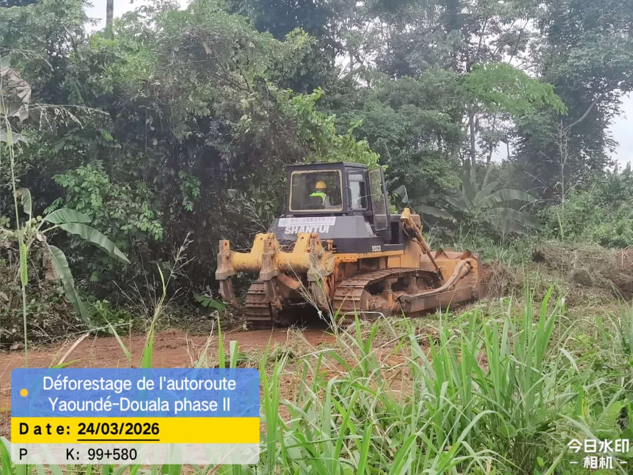 Après le payement des indemnisations achevé le 23 mars dans l’arrondissement de Pouma, l’entreprise CFHEC a démarré ce 24 mars 2026 au point kilométrique 99 + 580, le deforestage des emprises. Plusieurs engins ont à cet effet été mobilisés.