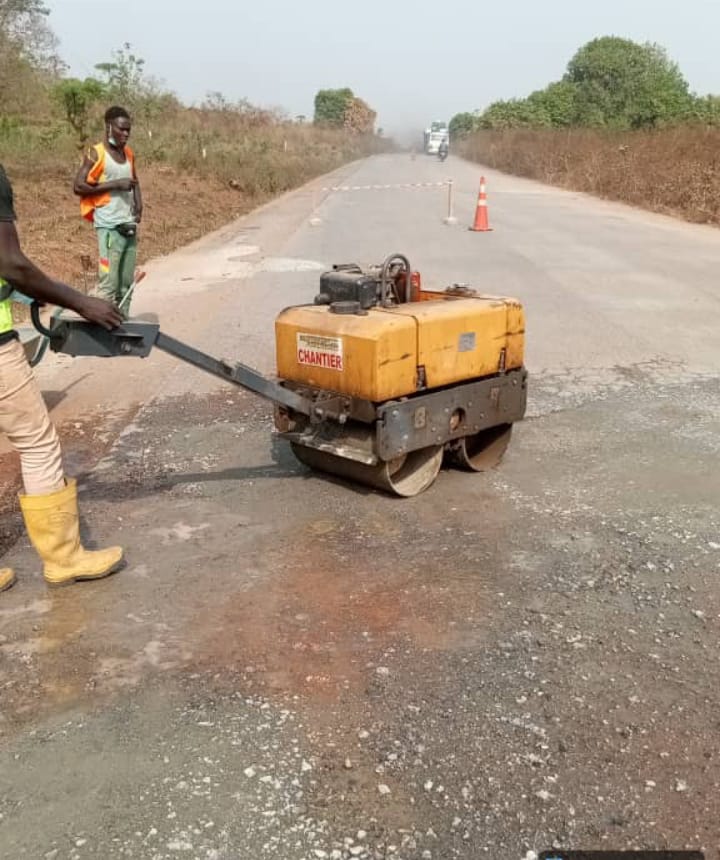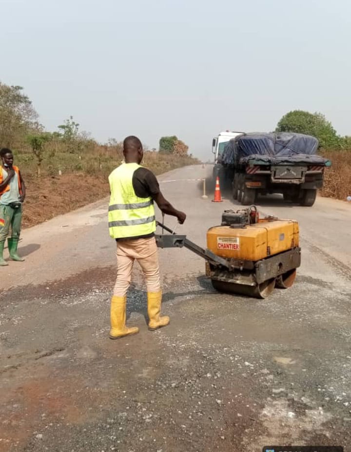 Les surfaces traitées recevront du béton bitumineux dans les prochains jours. Outre ces prestations, on note que des travaux de curage, débroussaillage et dérasement des accotements vers le point kilométrique 227 se poursuivent.