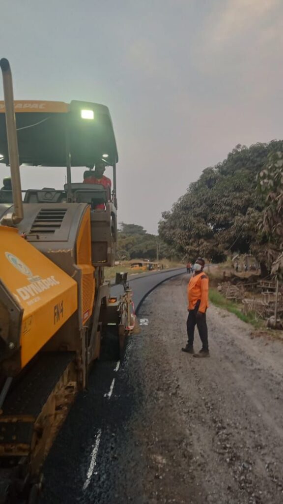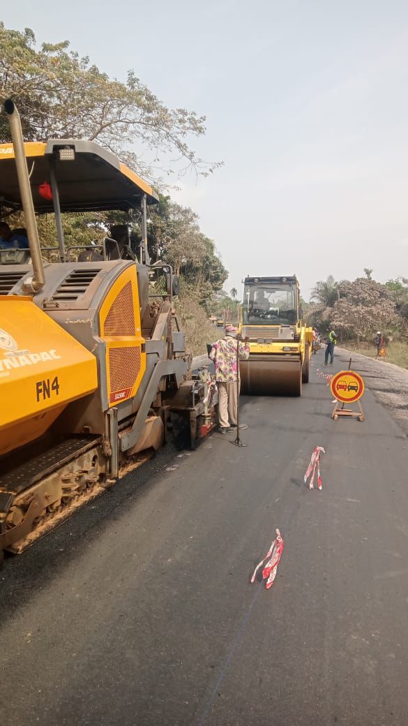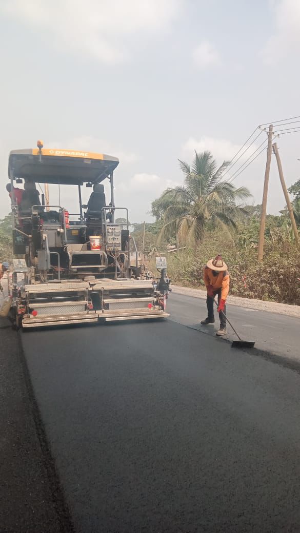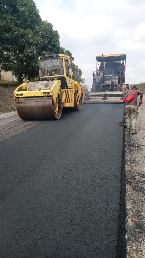 Lundi 2 février 2026 au point kilométrique 36+000 de la section 2 du projet, Échangeur Zamengoue-Ekekam-Evodoula, les équipes s’attellent à mettre en œuvre une couche d’enrobés. La mobilisation est effective, même s’il ne s’agit pas encore du déploiement habituel, en raison des difficultés financières de l’entreprise.