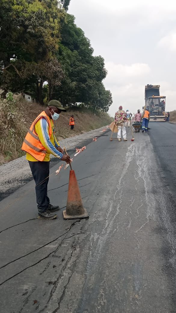 Au PK 46+500, des travaux de réalisation de la couche de fondation ont été entamés.