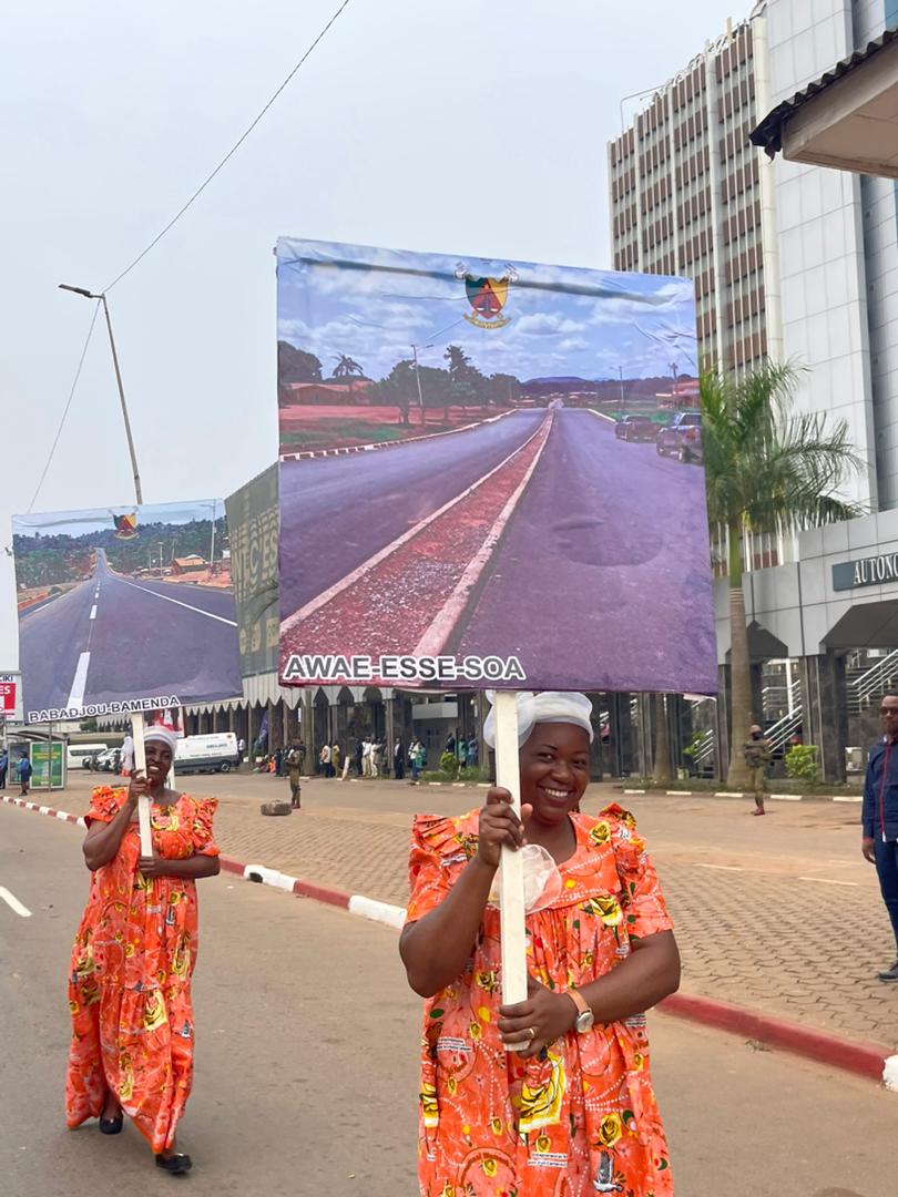 Le carré du MINTP s’est donc distingué par la présence des femmes ingénieures entre autres symboles de la place grandissante des femmes dans le secteur des travaux publics. Les défilantes arboraient également des pancartes mettant en lumière certaines réalisations du Maitre d’Ouvrage.