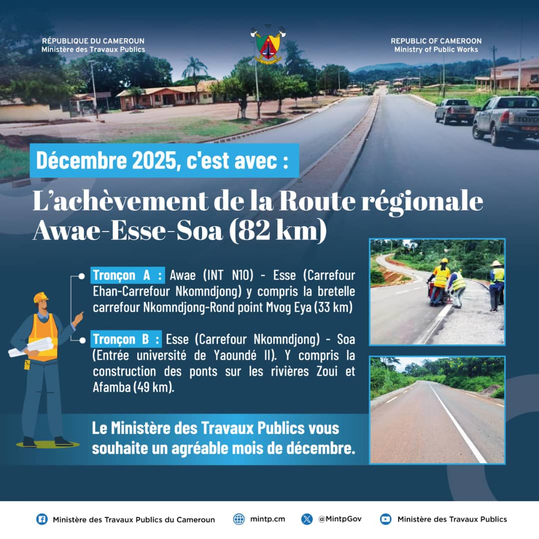 Actualités 1 décembre 2025 Cameroun : le Mintp annonce une bonne nouvelle 0 COMMENT 742 Views Print EMail Share On Facebook Tweet On Twitter Share Tweet Share Pin Send Share Publications similaires : Ballon d’or France football : la fin d’une ère CAN 2019 : le gouvernement crie à l’injustice Can 2019 : coup de gueule de Martin Camus Mimb Culture : AYISSI NGA le créateur des vêtements Streets Previous post CAMEROUN : PRINCIPALES RESOLUTIONS ET RECOMMANDATIONS DE L’ATELIER DE MISE A NIVEAU DES RESPONSABLES DES DÉPARTEMENTS MINISTÉRIELS TUTELS ET PARTENAIRES DU FODECC Next post Cameroun : « Nous avons un important programme d’investissement routier en cours… » Share Tweet Share Pin Send Share Laisser un commentaire Annuler la réponseVotre adresse e-mail ne sera pas publiée. Les champs obligatoires sont indiqués avec *Commentaire * Nom * E-mail * Site web