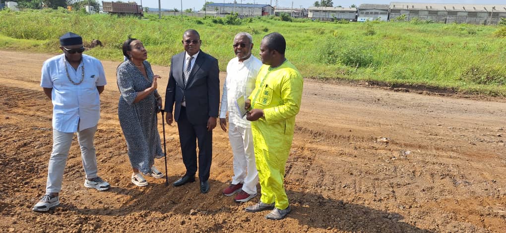 À Bonanjo, la visite a porté sur l’état d’avancement de la tour d’affaires. Le sous-sol et le rez-de-chaussée sont achevés.