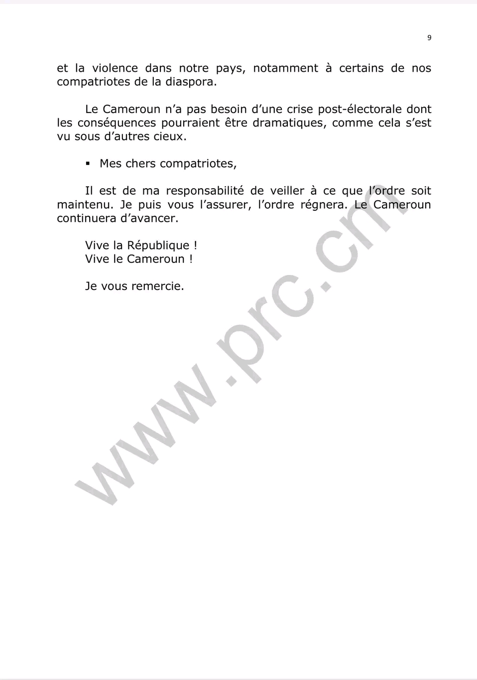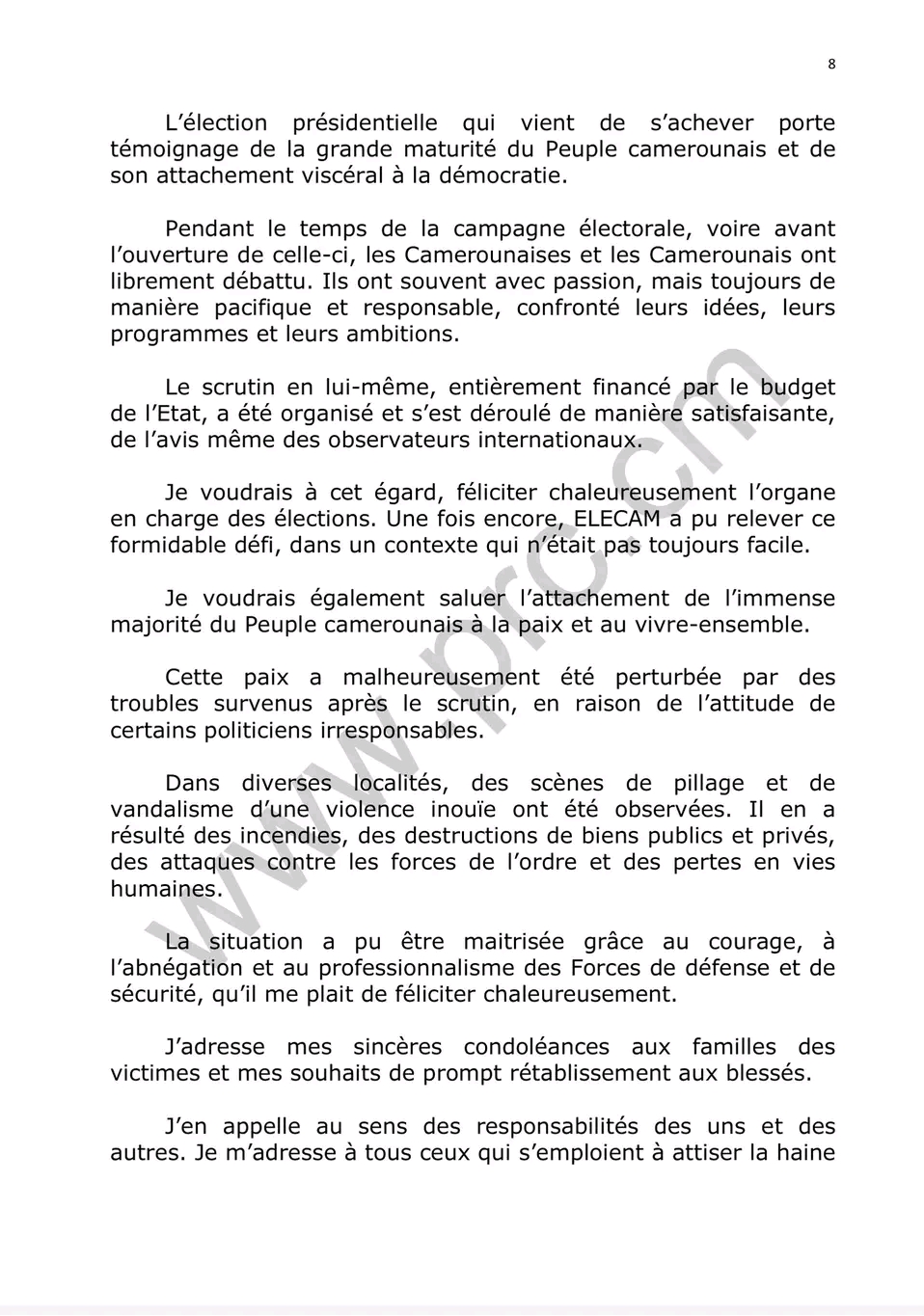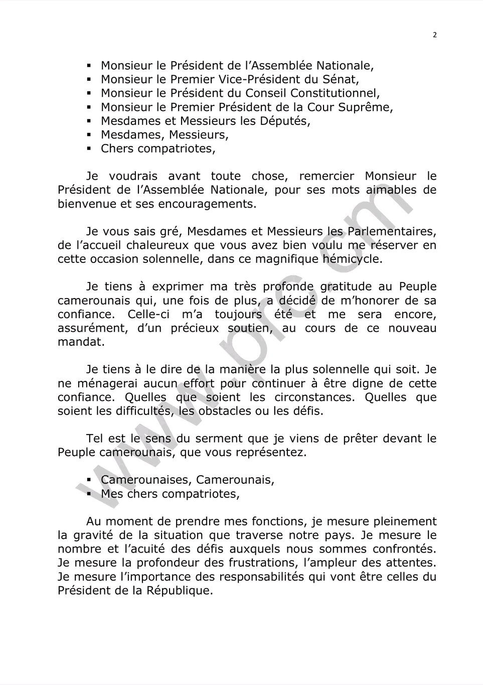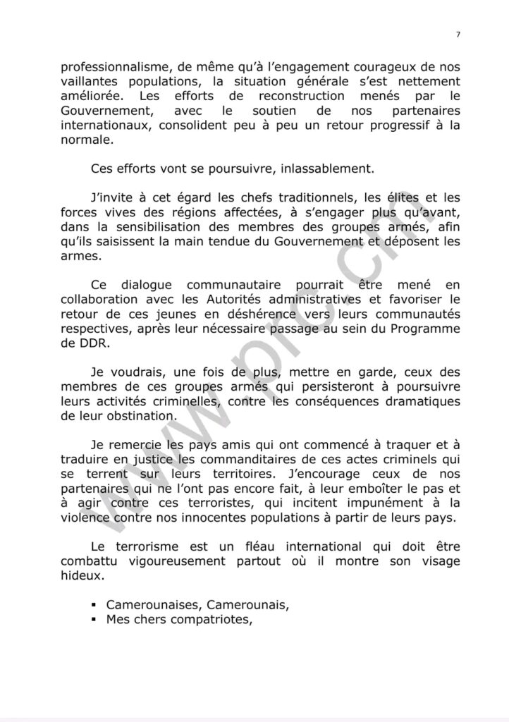 Le discours d’investiture du Chef de l’État ,Son Excellence Paul Biya ,quelques minutes après sa prestation de serment ce 06 novembre 2025.