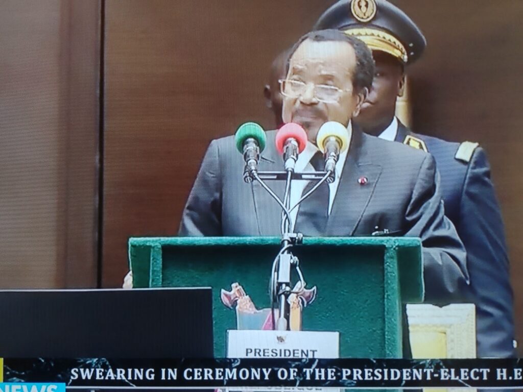 « Au moment de prendre mes fonctions, je mesure les défis auxquels nous sommes confrontés, je mesure l’importance des responsabilités qui vont être celles du président, je voudrais en cette occasion réitérer un engagement que j’ai déjà pris par le passé, celui des idéaux qui m’ont toujours guidé depuis mon accession à la magistrature suprême, celle d’œuvrer sans relâche à l’avènement d’un Cameroun uni et prospère » dixit S.E Paul Biya