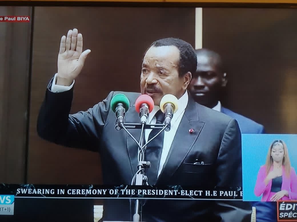 Présidée par Cavaye Yeguie Djibril, Président de l’assemblée Nationale, le Président de la république élu a prête serment en prononçant la célèbre formule : « I do so swear » — « Je le jure » — marquant ainsi le début officiel de son nouveau mandat à la tête du Cameroun