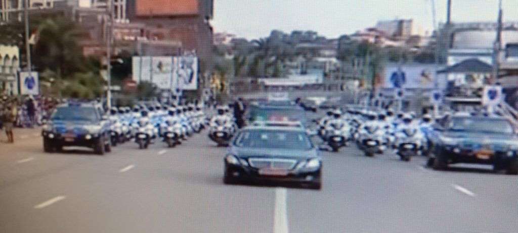 il est 12h lorsque le cortège ayant à son bord le chef de l’Etat élu, Paul Biya , franchisse les artères du palais de l’assemblée nationale pour la cérémonie de prestation de serment pour son entrée en fonction à la tète de la magistrature suprême.