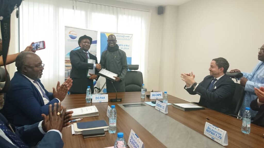 La Caisse Nationale de Prévoyance Sociale (CNPS), organisme de sécurité sociale du Cameroun, a signé, le 04 novembre 2025 à Yaoundé, un mémorandum d’entente avec le Port Autonome de Kribi (PAK), le Consortium BESTWAY Finance Ltd/Austsino Ressources Group Ltd, la société CAMINA S.A et la société G-STONES.
