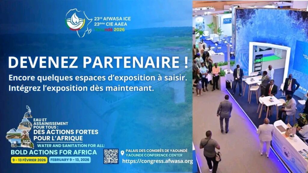 La Cameroon Water Utilities Corporation (CAMWATER) invite les entreprises, institutions et partenaires du secteur à saisir les derniers espaces d’exposition disponibles à l’occasion de la 23ᵉ Conférence Internationale de l’AfWASA (23rd AfWASA ICE), qui se tiendra à Yaoundé du 9 au 13 février 2026.