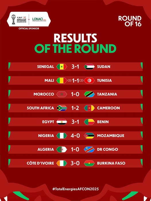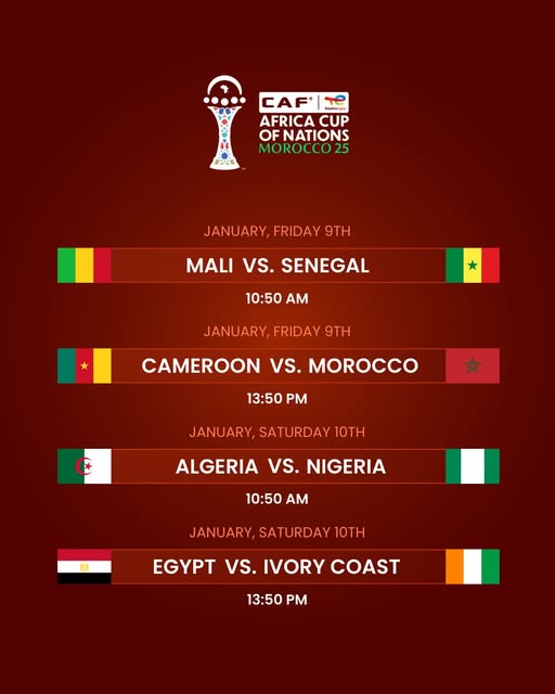 Les affiches des quarts de finale de la CAN Maroc 2025 :