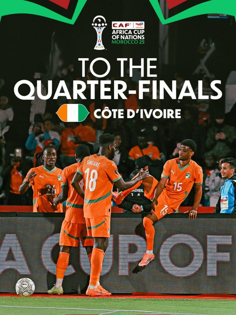 Le tenant du titre ne compte pas rendre sa couronne si facilement. Ce mardi 6 janvier 2025 , sur la pelouse du Grand Stade de Marrakech, la Côte d’Ivoire a envoyé un message fort au reste du continent. En s’imposant avec une maîtrise déconcertante face aux Étalons du Burkina Faso (3-0), les hommes d’Emerse Faé ont validé le dernier ticket pour les quarts de finale de la CAN 2025.