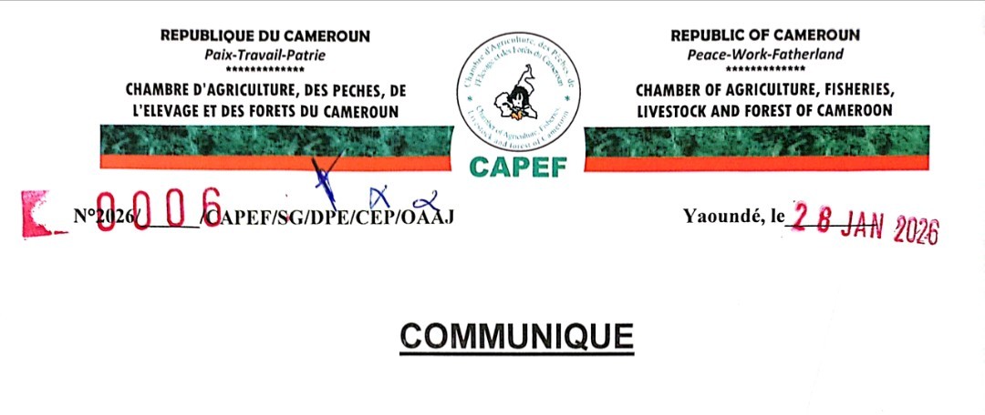 Actualités 9 février 2026 CAPEF : le Président invite les Camerounais à saisir les opportunités d’affaires en Biélorussie 0 COMMENT 581 Views Print EMail Share On Facebook Tweet On Twitter Share Tweet Share Pin Send Share Le communiqué du Président de la Chambre d’Agriculture, des Pêches, de l’Elevage et des Forêts du Cameroun. Source : celcom CAPEF Publications similaires : Ballon d’or France football : la fin d’une ère CAN 2019 : le gouvernement crie à l’injustice Can 2019 : coup de gueule de Martin Camus Mimb Culture : AYISSI NGA le créateur des vêtements Streets Previous post RINADH 2026 : déclaration de Yaoundé Next post Construction de la route Edéa-Dizangue : démarrage de la mise en œuvre de la couche de base Share Tweet Share Pin Send Share Laisser un commentaire Annuler la réponseVotre adresse e-mail ne sera pas publiée. Les champs obligatoires sont indiqués avec *Commentaire * Nom * E-mail * Site web