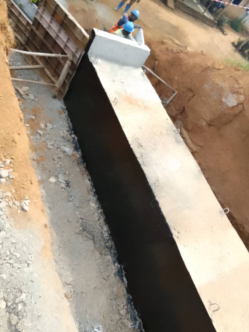 L’entreprise est bien mobilisée sur le terrain et les principales activités en cours à date concernent aussi bien la pose des éléments pré-fabriqués constitutifs des dalots et caniveaux prévus dans le contrat et la préparation de la mise en forme de la plateforme. Sur les 11 dalots prévus dans le projet, 10 sont en cours de réalisation.
