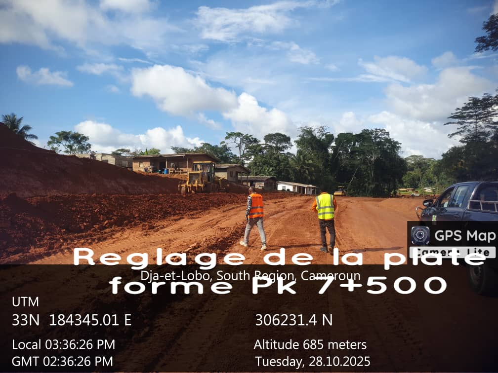 En parallèle, l’entreprise a réalisé le réglage de la plate-forme jusqu’au PK 7+500 ainsi que des travaux de terrassement en déblai sur la même section. Malgré les fortes crues ayant momentanément interrompu les travaux en raison de la saturation du sol, la circulation a été maintenue.