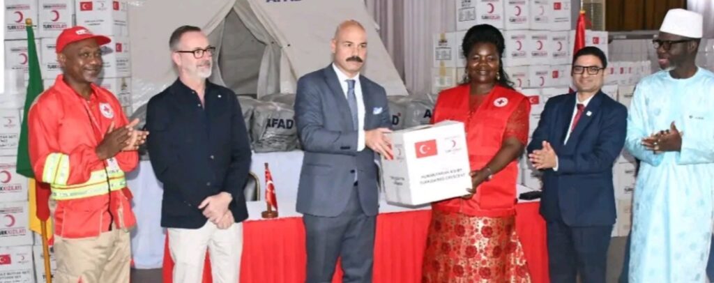La Société du Croissant-Rouge turc a remis un lot de matériel humanitaire à la Croix-Rouge camerounaise pour aider à atténuer la crise humanitaire dans l’extrême nord du pays et soutenir les communautés vulnérables à travers le pays. La cérémonie de remise a eu lieu le 10 décembre 2025, en présence de l’ambassadeur de Turquie au Cameroun, S.E. Volkan Öskiper, et de la présidente de la Croix-Rouge camerounaise, Cécile Akame Mfoumou.