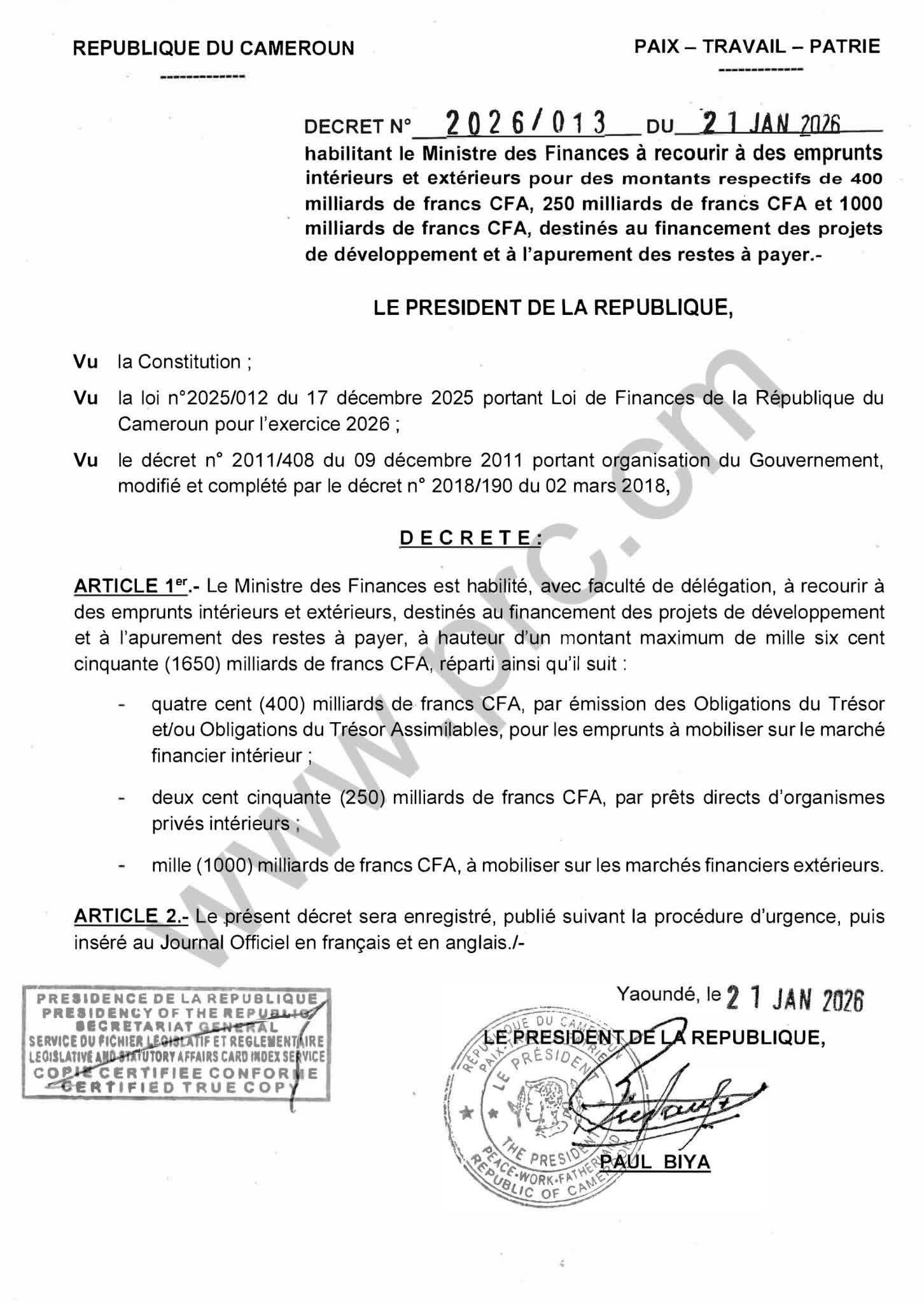 Le président Paul Biya autorise un vaste plan d’endettement pour financer le déficit budgétaire et apurer les arriérés de paiement de l’État, qui pèsent sur l’économie.