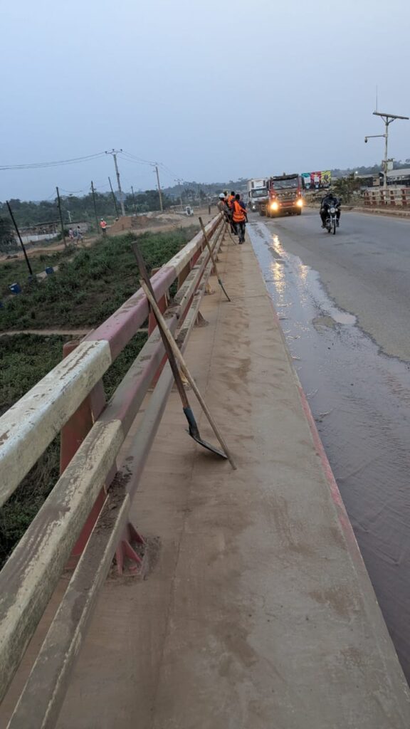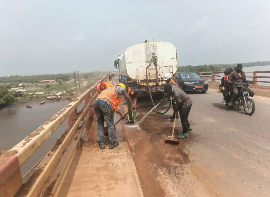 Suite aux vibrations observées sur le pont sur la Dibamba, le Ministre des Travaux Publics a prescrit des mesures immédiates pour remplacer les joints défectueux de l’ouvrage et traiter la couche de roulement. Pour faciliter l’orientation des usagers, l’installation des panneaux de signalisation des travaux, des panneaux de limitation de vitesse à 20 km/h ainsi que des ralentisseurs de part et d’autres de l’ouvrage, a été prescrite le 22 février 2026 à l’entreprise MAG SARL.