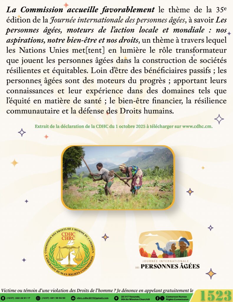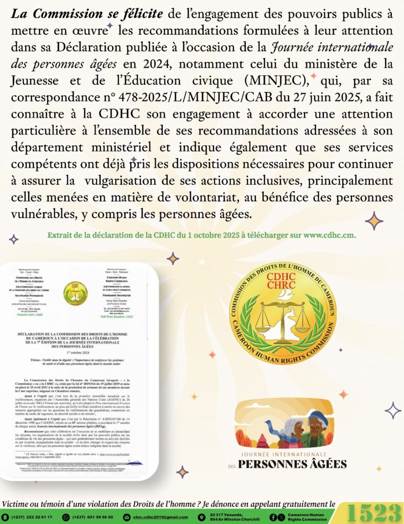 Actualités 1 octobre 2025 Droits de l’homme : le regard de la CDHC sur monde 0 COMMENT 228 Views Print EMail Share On Facebook Tweet On Twitter Share Tweet Share Pin Send Share Source : celcom CDHC Publications similaires : Ballon d’or France football : la fin d’une ère CAN 2019 : le gouvernement crie à l’injustice Can 2019 : coup de gueule de Martin Camus Mimb Culture : AYISSI NGA le créateur des vêtements Streets Previous post 35E ÉDITION DE LA JOURNÉE INTERNATIONALE DES PERSONNES ÂGÉES : DÉCLARATION DE LA COMMISSION DES DROITS DE L’HOMME DU CAMEROUN Next post Mondial U17 : le Cameroun aura droit à trois matchs amicaux Share Tweet Share Pin Send Share Laisser un commentaire Annuler la réponseVotre adresse e-mail ne sera pas publiée. Les champs obligatoires sont indiqués avec *Commentaire * Nom * E-mail * Site web