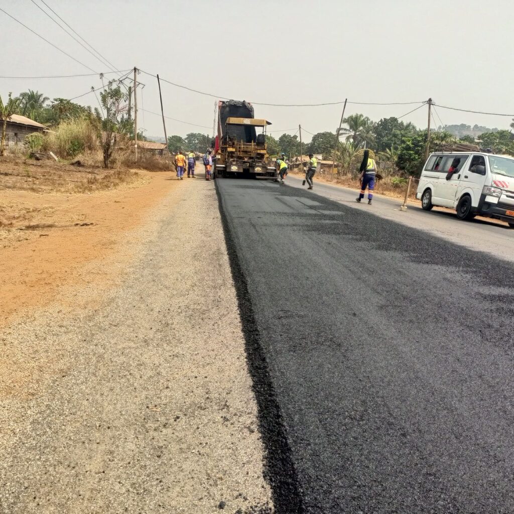 Au 26 janvier 2026, les travaux connaissent un avancement de 20,69 et les travaux en cours concernent la mise en œuvre du béton bitumineux du point kilométrique 4+820 au point kilométrique 5+475. Le projet consiste en l’entretien confortation de la Nationale N°6, section Foumbot-Foumban, sur un linéaire de 42 km dans le département du Noun, région de l’Ouest.