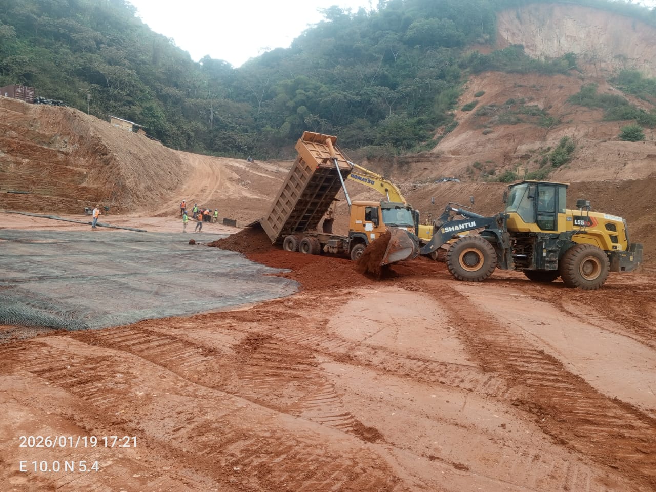 À la date du samedi 17 janvier 2026, les travaux réalisés concernent la réalisation des tranchées drainantes de part et d’autre du dalot en amont et des opérations de déblai, de mise en dépôt et de nettoyage de la plateforme en préparation. Le transport de la latérite et sa mise en dépôt provisoire se poursuivent sans encombre en marge des travaux de mise en forme de la plateforme. Au 20 janvier 2026, la circulation sur la voie de contournement est fluide.
