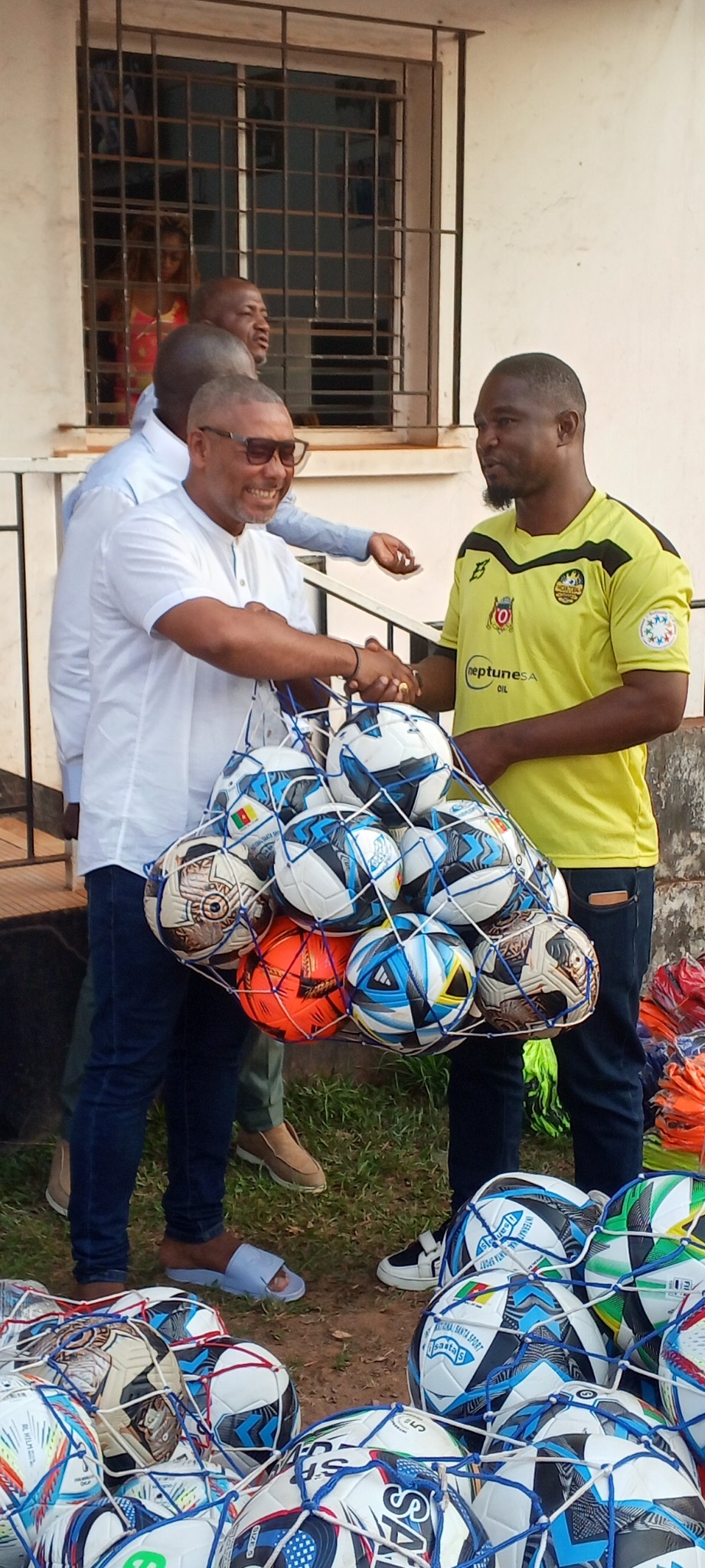Au lendemain de l’assemblée générale élective où le président de la fédération camerounaise de football donnait les fondements de sa nouvelle mandature, le football jeune et amateur sont dans ses priorités. C’est ainsi qu’un groupe d’acteurs du football réunis autour de Félix Armel Ndjock au siège du Tkc en offrant une dotation de 600 ballons , des chasubles et des coupelles aux clubs amateurs de la région.