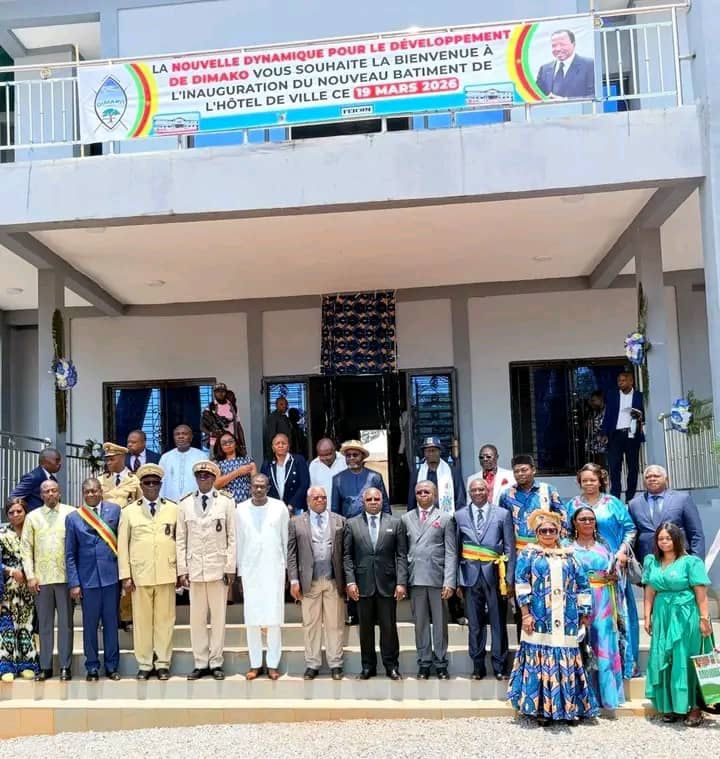 Le Ministre de la Décentralisation et du Développement Local, Georges Elanga Obam, a présidé, le jeudi 19 mars 2026, la cérémonie de coupure du ruban symbolique du nouvel Hôtel de Ville de la commune de Dimako, dans le département du Haut-Nyong, Région de l’Est.