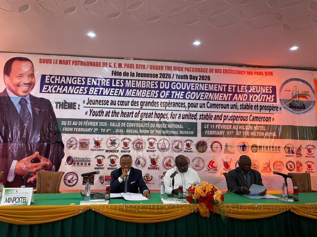 C’était à l’occasion de la cérémonie d’échanges entre les membres du Gouvernement et les jeunes, organisée par le Ministère de la Communication dans le cadre de la Fête de la Jeunesse 2026, que le Secrétaire Général du Ministère des Travaux Publics, Urbain Noël EBANG MVE, représentant le Ministre des Travaux Publics, Emmanuel NGANOU DJOUMESSI, a pris part ce lundi 9 février 2026, sous le thème : « Jeunesse au cœur des Grandes Espérances, pour un Cameroun uni, stable et prospère ».