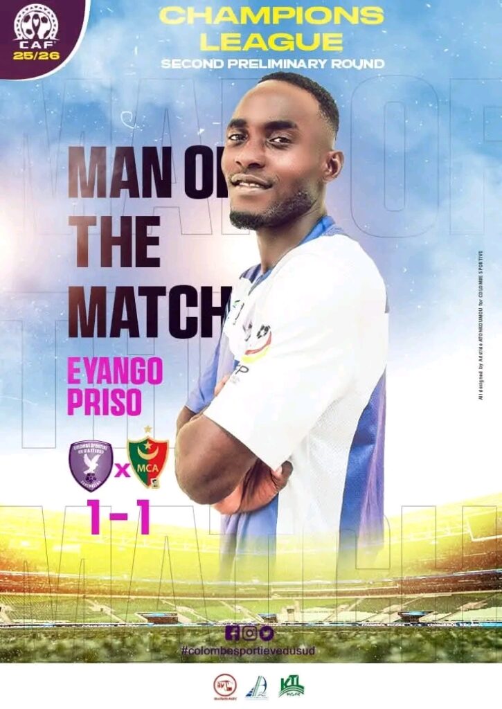 La Colombe du Sud et le MC Alger se sont neutralisés (1-1), ce dimanche 19 Octobre 2025, comptant pour le match aller des préliminaires de la ligue des champions Caf qui annonce le remake Cameroun- Algérie le 26 Octobre 2025 pour le match retour.