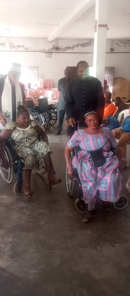 Des larmes de joie, on en a vu de vraies couler aux yeux des personnes vivant avec un handicap à Loum ce lundi 5 janvier 2025. L’émotion était alors à son comble; surtout pour ces handicapés moteurs qui, en venant à la rencontre de Maître Ferdinand ÉDIMO NANA marchant avec les fesses ou les genoux, ne s’imaginaient pas qu’ils rentreraient sur un fauteuil roulant qui leur appartient désormais.