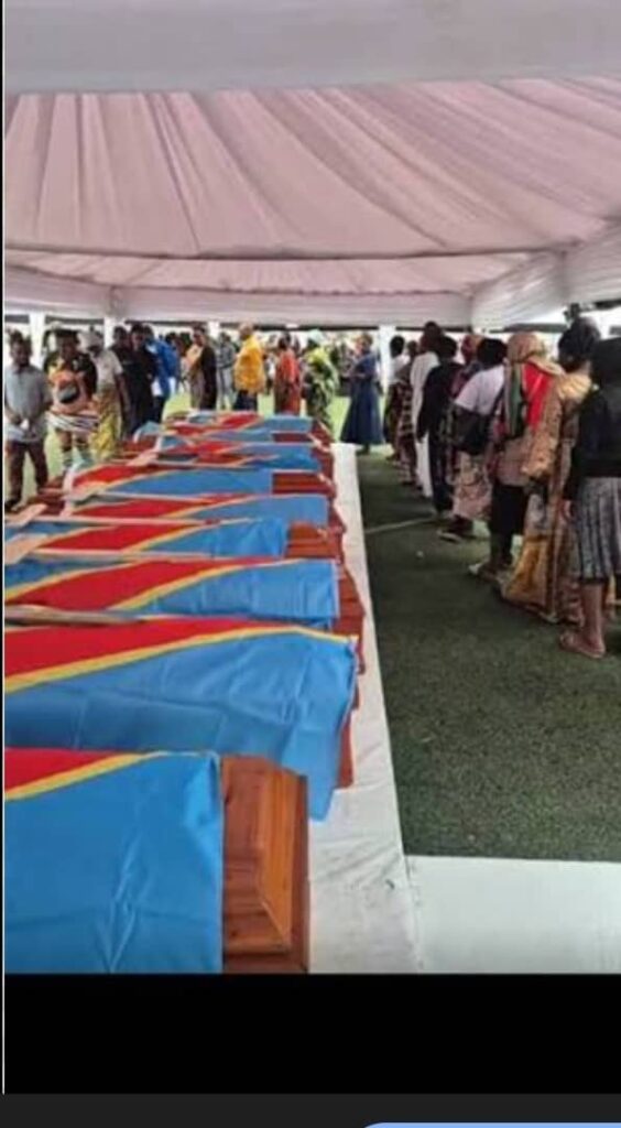 Vingt-deux cercueils ont été alignés devant les habitants de Goma et les familles des défunts. La cérémonie a été marquée par des scènes de deuil intense, où des femmes sanglotaient et hurlaient leur peine.