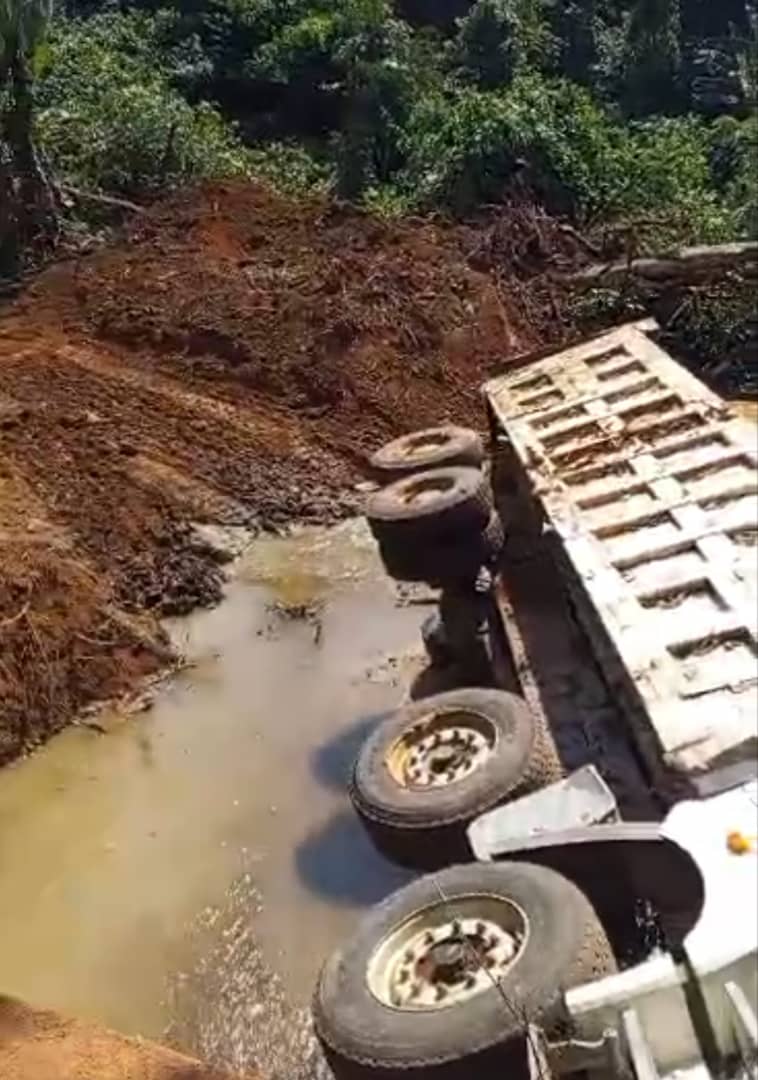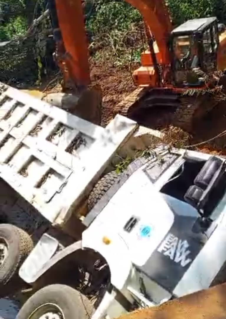 Le 28 décembre 2025, les opérations de retrait du camion accidenté ont été conduites avec succès, grâce à la mobilisation d’une pelle excavatrice, de deux chauffeurs et du matériel adapté. Une voie d’accès à la rivière a été aménagée pour faciliter cette intervention, permettant ainsi de dégager complètement l’ouvrage. Sur le plan technique, le pont reste provisoirement stable. Par ailleurs, un dossier technique pour la construction d’un tablier mixte acier-béton de 12 mètres est en cours de préparation et sera transmis au Ministère des Travaux Publics selon une procédure d’urgence, en vue d’une solution définitive.