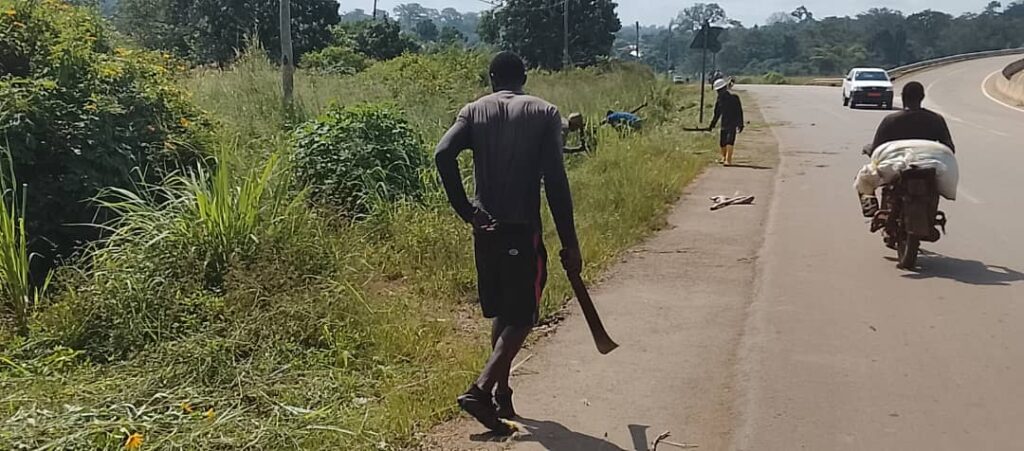 À Nkolmelen, au niveau de l’échangeur dit « trompette », la Commune d’Obala a en engagé le 21 novembre 2025, des travaux de nettoyage et de cantonnage destinés à redonner pleine visibilité à cet ouvrage, véritable joyau offert à la ville. L’opération consiste notamment à dégager les herbes envahissantes le long du trottoir sur une largeur minimale de deux mètres, afin d’assurer la propreté du site et de renforcer la sécurité des usagers.
