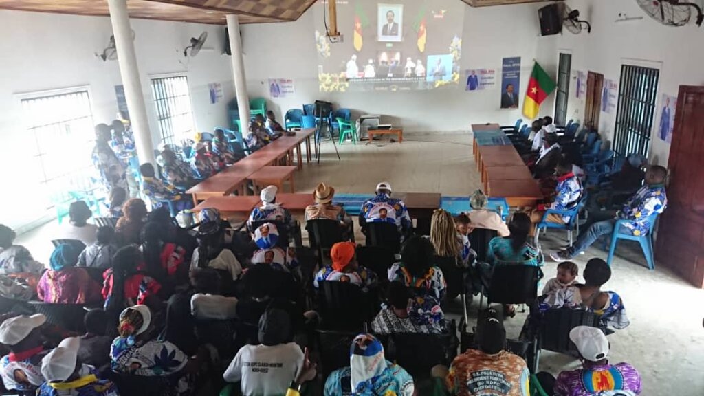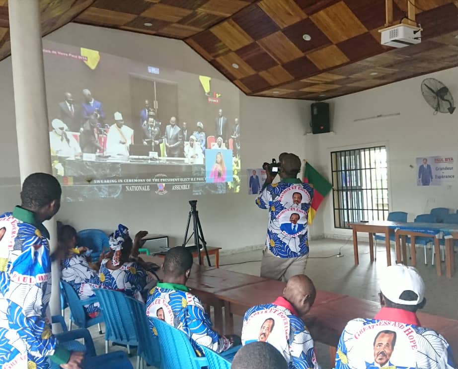 Grâce à une vidéoprojection, les militants et sympathisants du Rassemblement Démocratique du Peuple Camerounais (Rdpc) ont suivi avec une attention particulière le discours du Chef de l’État réelu du Cameroun.
