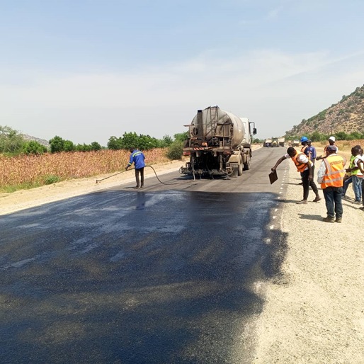 Alors que les équipes de l’entreprise évoluent dans l’exécution des prestations liées à la pose des perrés maçonnés, à la préfabrication des glissières en béton armé, à la préfabrication des bordures un accent est mis sur la planification des travaux de mise en œuvre de la couche de roulement.