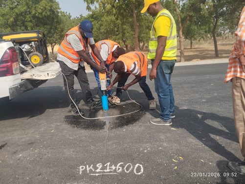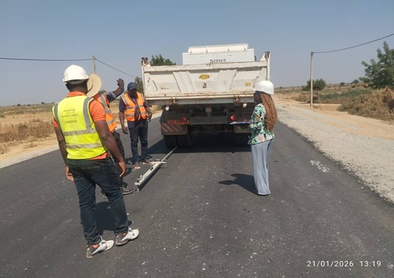 Au 2 février 2026, le projet connait un avancement de 82,40% et dans l’attente du geogrille destiné à renforcer la chaussée, quelques prestations sont en cours.