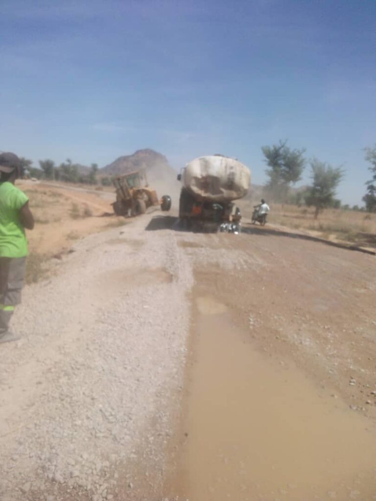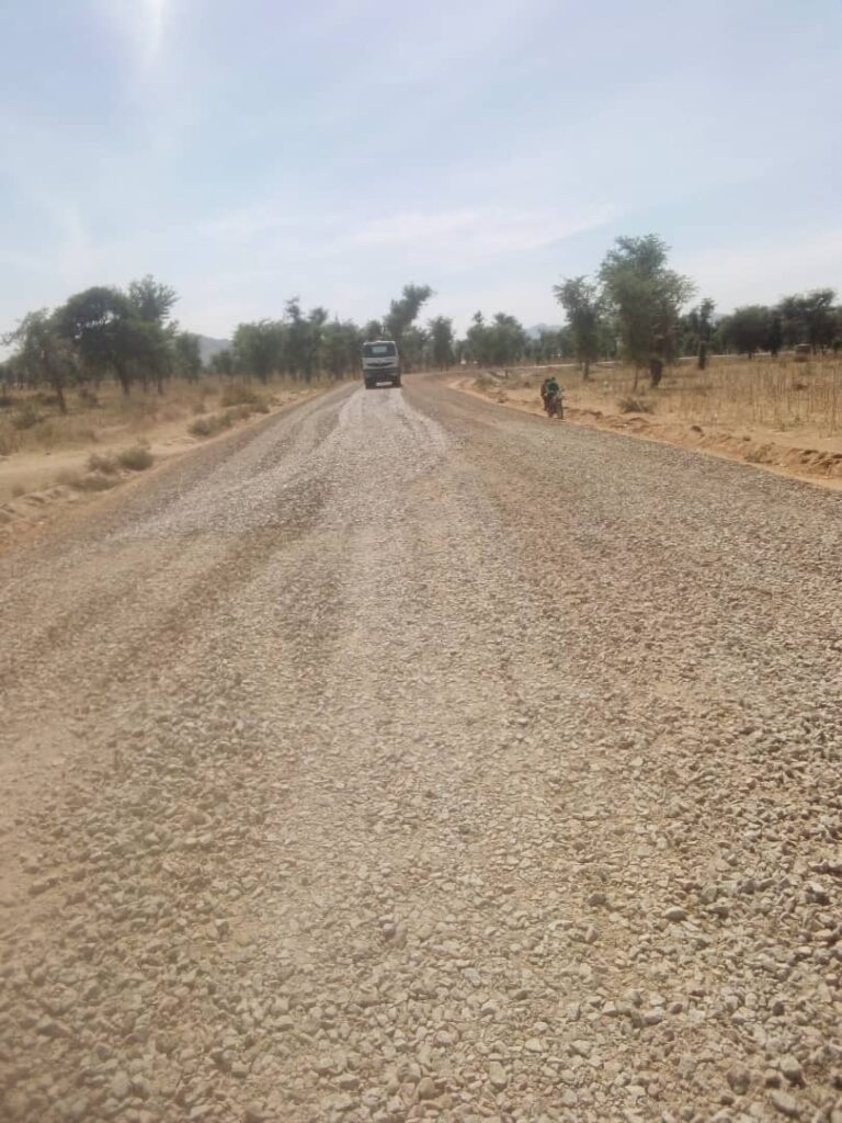 L’exécution de l’imprégnation sablée sur les sections restantes dépend selon SADJO BABA en charge des travaux, de la disponibilité du bitume. À terme, il reste à réaliser 2,95 kilomètres d’imprégnation sablée et 7,05 kilomètres d’enduits bicouche et tricouche pour achever la structure de chaussée.