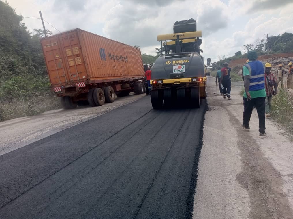 Mardi 30 décembre 2025, des engins de l’entreprise SOMAF se déploient sur la section Edéa-pont Bivouba, à l’effet de boucher des nids de poule, traiter des zones critiques et de répandre une couche de béton bitumineux pour fluidifier la circulation de centaines de gros porteurs qui vont et viennent dans les deux sens. Ces mouvements devenus réguliers sur cet axe fortement dégradé et en attente de réhabilitation, dépendent malheureusement des ressources de l’entreprise. En effet, dans le but de parer au plus pressé en attendant la contractualisation des entreprises chargés de reconstruire la route Edéa-Kribi, le Ministre des Travaux Publics a entrepris de mener des travaux d’entretien confortatif de cette route, après un contrat passé en octobre 2024. Depuis le démarrage des travaux, l’entreprise SOMAF dont le contrat est à la fois financé par le Fonds Routier et le BIP peine à se mobiliser.