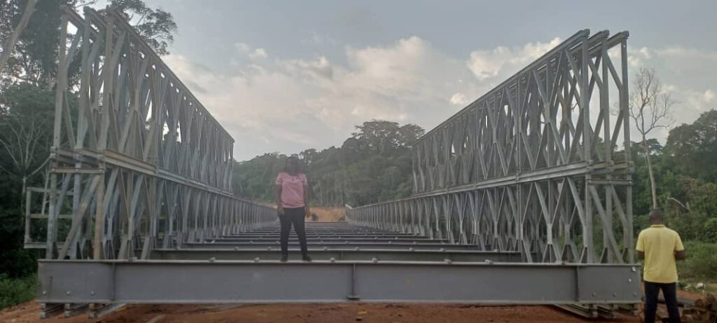 Les travaux de construction du pont en structure métallique Acrow sur la rivière Mboro franchissent une étape décisive. Les appuis de transition émergent progressivement, marquant une avancée significative sur cet ouvrage en construction dans le département de la vallée du Ntem, sur l’axe Ambam–Mikan–Ma’an, dans la région du Sud.