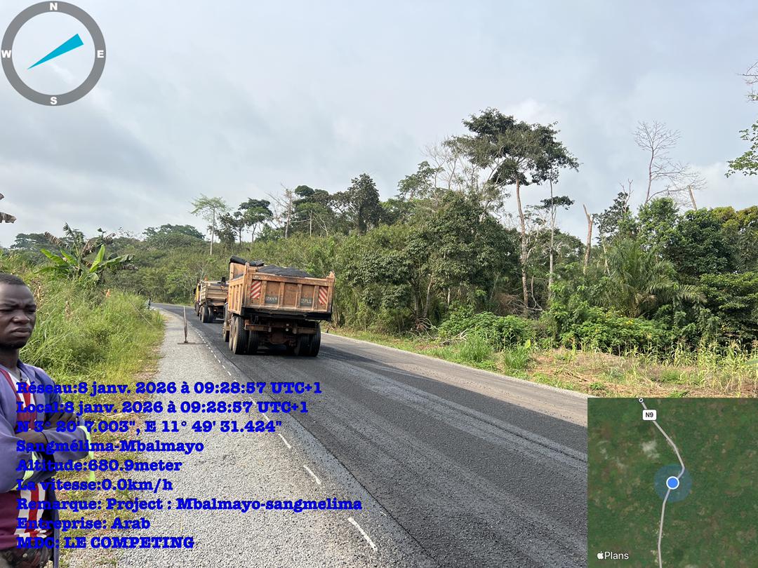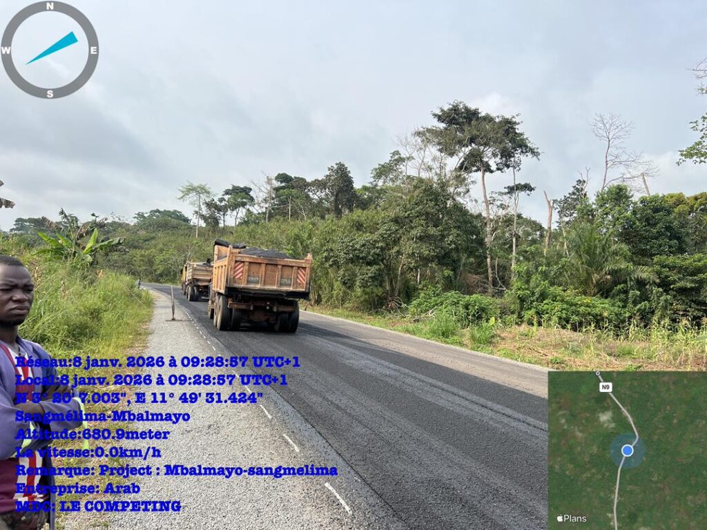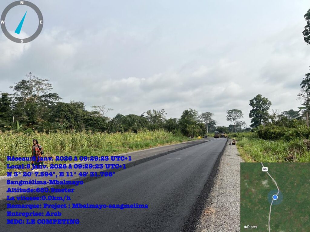 La pose des géogrilles, destinés à renforcer la structure de la chaussée, à améliorer la portance du sol support et à accroître la durabilité de la route avant la mise en œuvre de la couche de roulement, progresse de manière significative sur le lot N°2 (PK 39+500 à Nkolaya III et le PK 82+000 à Nkout II) du projet de réhabilitation de la route Mbalmayo–Sangmélima.