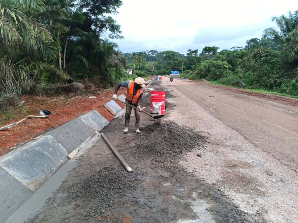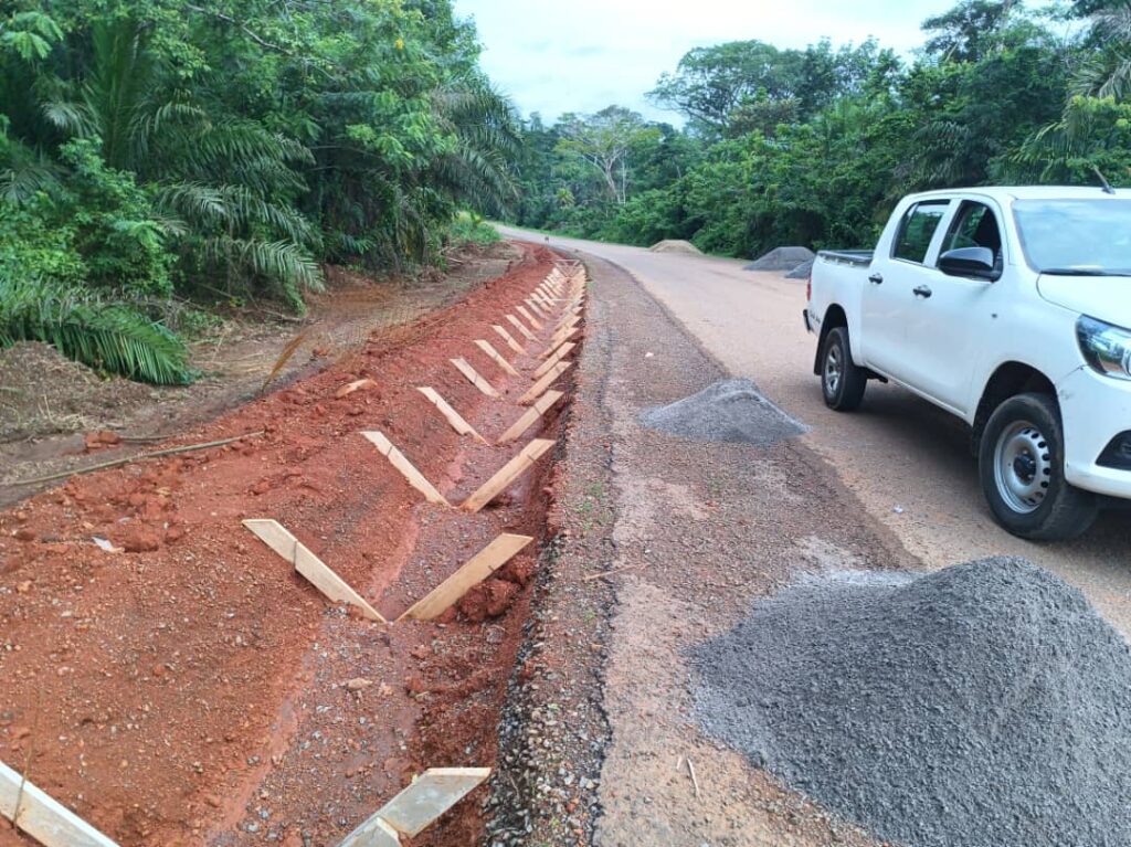 En attendant la formulation du béton, préalable technique aux travaux de chaussée, UNION ENTERPRISE concentre ses efforts sur les travaux d’assainissement préliminaires, notamment l’approvisionnement en matériaux pour la réalisation des fossés. À cet effet, 30 tonnes de ciment SIMPOR 32.5R et 90 tonnes de gravier 15/25 ont déjà été mobilisées sur le site.