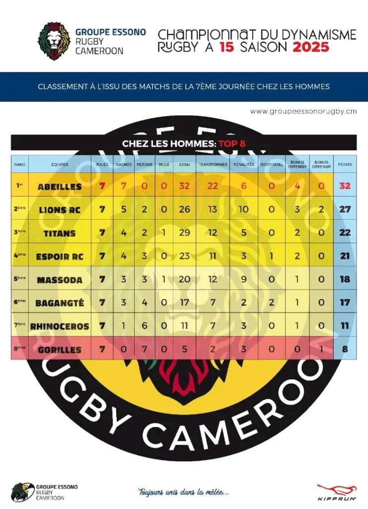 Le championnat du Dynamisme 2025 reprend ses classes ce Samedi 18 Octobre 2025 sur les aires de jeu de la région du centre et du Littoral dans les catégories dames et messieurs pour les passionnés du Rugby à 15 au Cameroun.