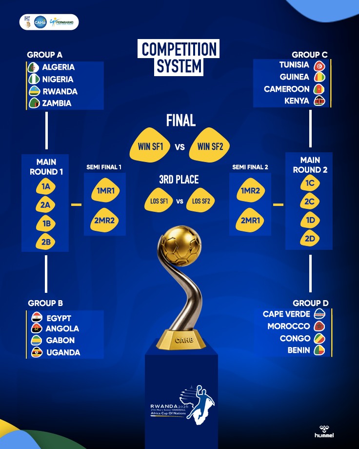 Pour le déroulement du tournoi, seuls les deux premiers de chaque groupe se qualifieront pour les quarts de finale avec un chronogramme établi par la confédération africaine de handball.