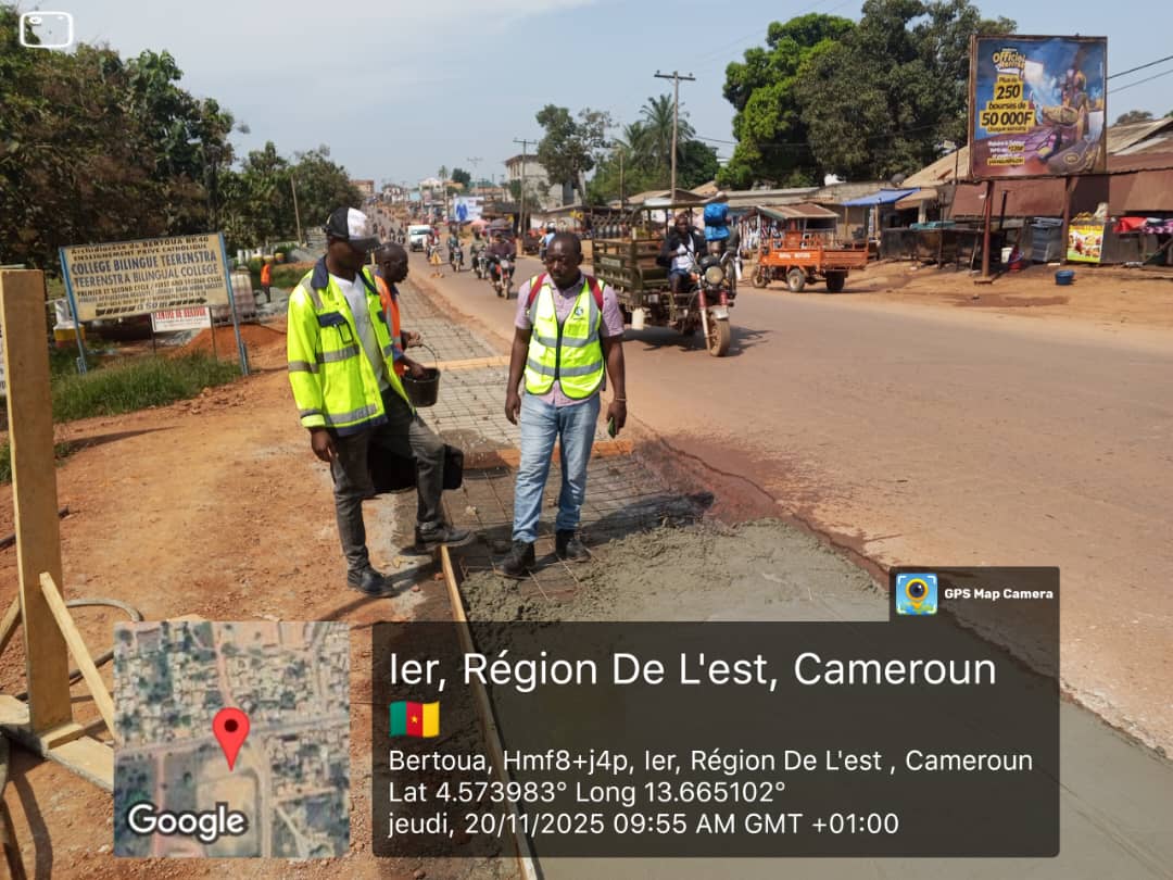 Au 20 novembre 2025, les travaux engagés sur la traversée urbaine de Bertoua, dans le cadre de l’entretien confortatif de la route Bertoua–Ndokayo–Garoua Boulaï, se poursuivent sur deux fronts : le traitement des nids de poules et le coulage des accotements.