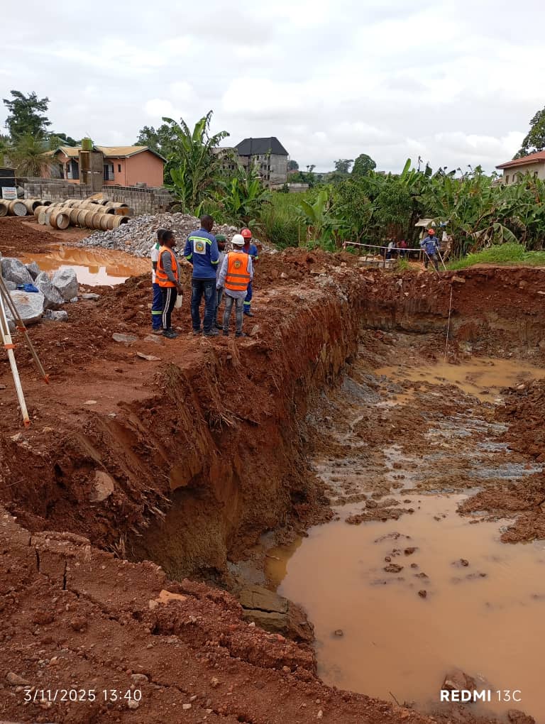 Ces interventions portent notamment sur le nettoyage du site, la réfection de la chaussée, ainsi que la mise en place de dalots et de drains destinés à améliorer l’écoulement des eaux pluviales et à préparer le terrain pour la reprise complète des travaux principaux.